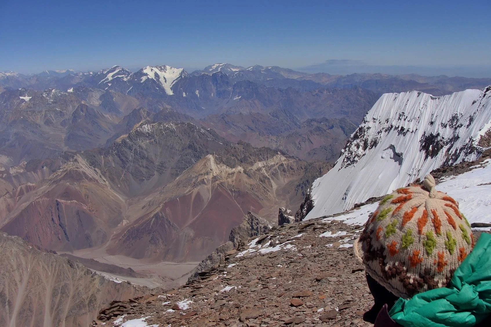 looking down from the summit of aconcagua towards the cretaceous stratigraphic section of interest.